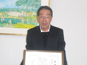 三恵会太田理事長より石河施設長に感謝状を贈呈